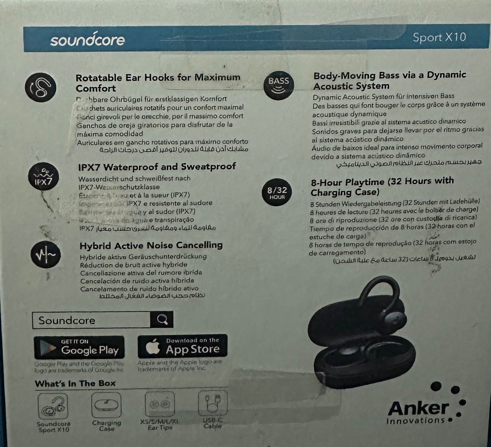 Selbst intensives Training oder Regen können den Soundcore Sport X10 nichts anhaben. Dank IPX7-Zertifizierung ist er vollständig gegen Schweiß und Wasser geschützt – ideal für jedes Workout, drinnen wie draußen.